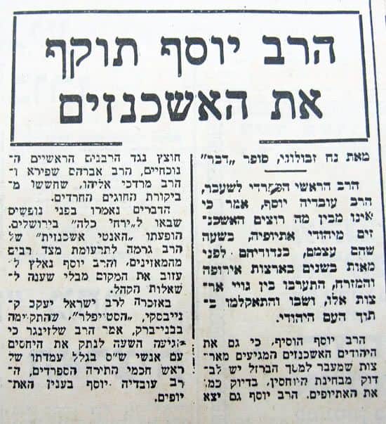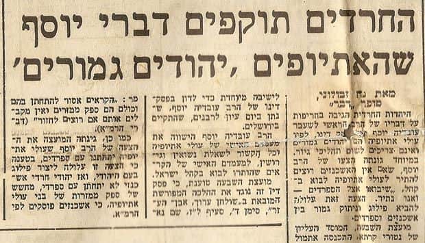 בתחתית העמוד- כתבות המתייחסות לפסיקתו של הרב עובדיה יוסף
