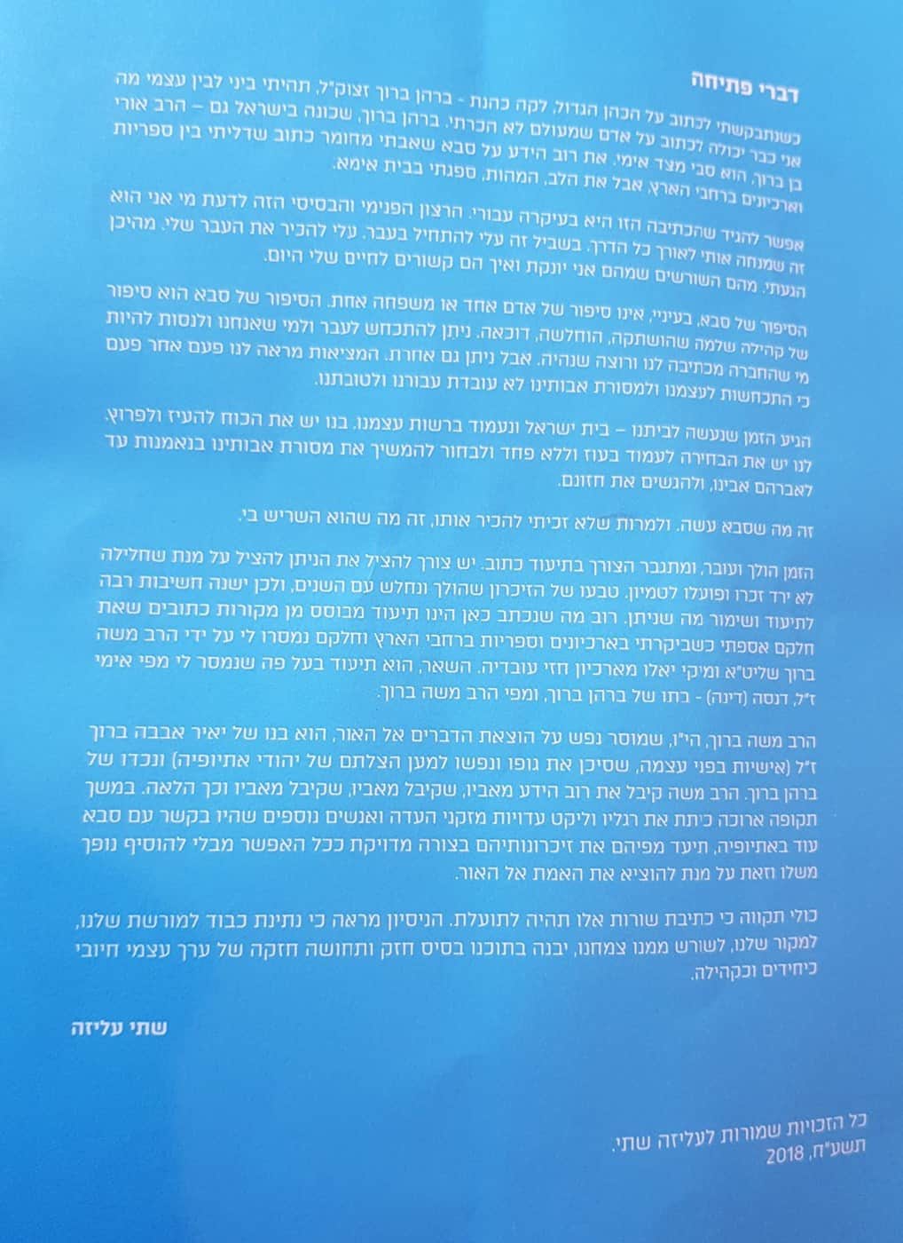 כל הזכויות שמורות לעליזה שתי © הקלק לתמונות מערב ההוקרה שנערך בתאריך 31/01/2018 באשדוד במלואת 40 שנה לעלייתו לישראל הרב משה ברוך, נכדו של ליקה כהנת ברהן ברוך מספר אודות סבו